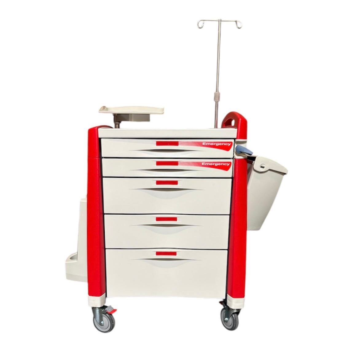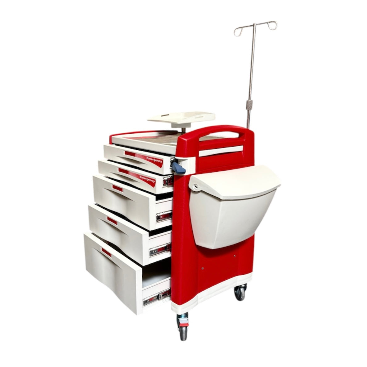 The emergency cart makes organization easy. Standard features and accessories provide dependable performance and promote improved workflow in emergency departments. The breakaway locking handle offers security while still providing easy access necessary for every emergency response. Stable maneuverability is built-in to every cart and comes standard with a full line of accessories enhance user efficiency and support code team performance.